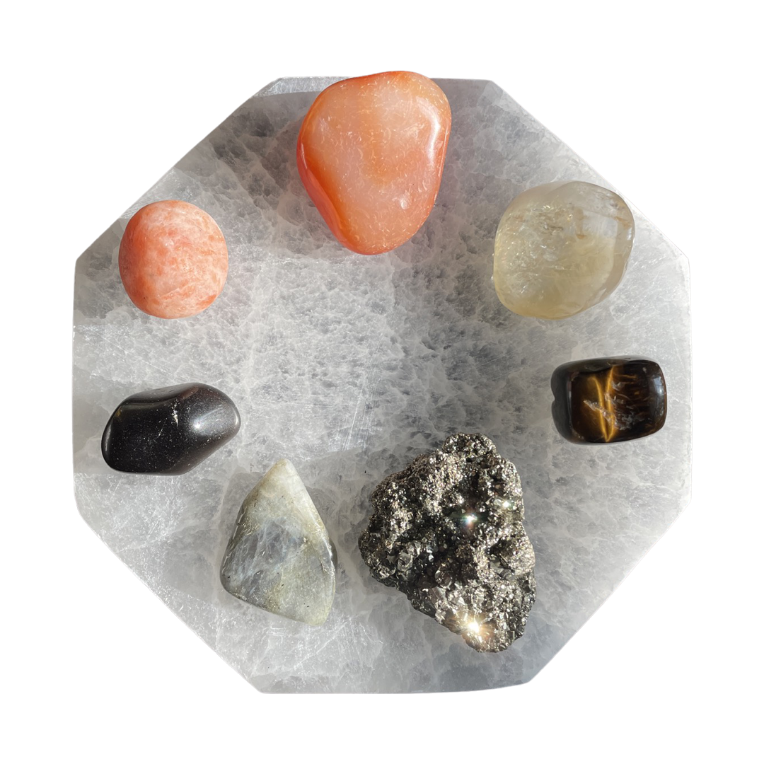 1 Sunstone Tumbled Stone Sunstone heightens intuition and guides one towards self-discovery. It alleviates stress and increases vitality. It also encourages independence and originality. Sunstone is especially helpful to those who have difficulty saying “No” to others.